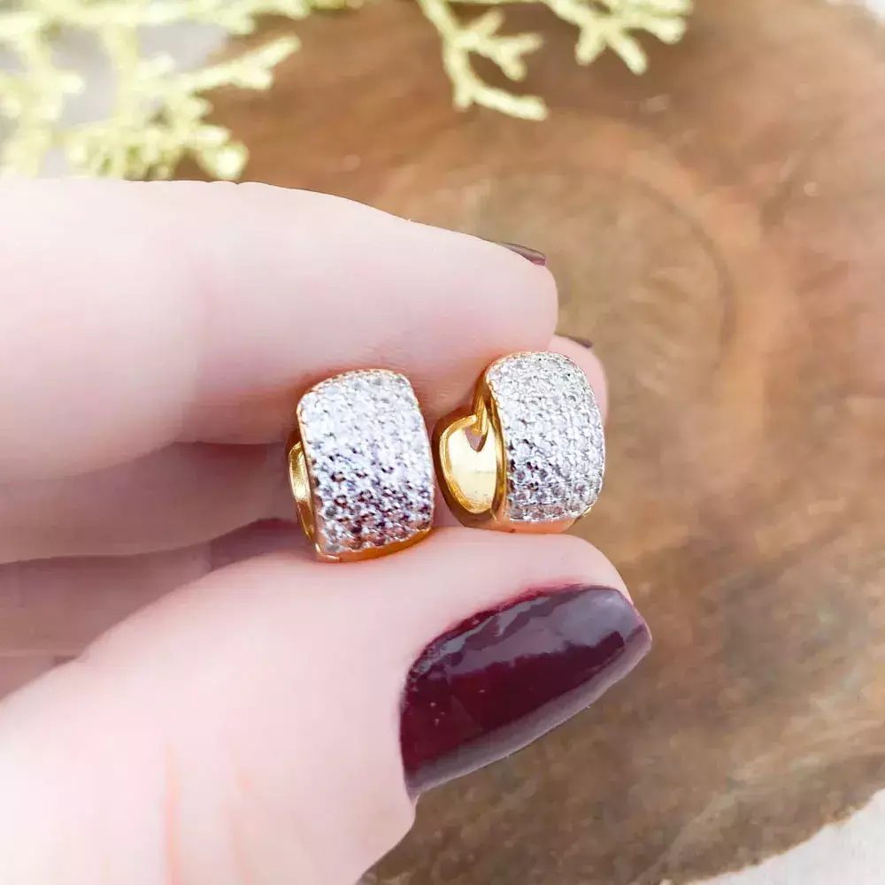 Argola Click P Cravejada Com Zircônias Cristais Banhada Em Ouro 18K